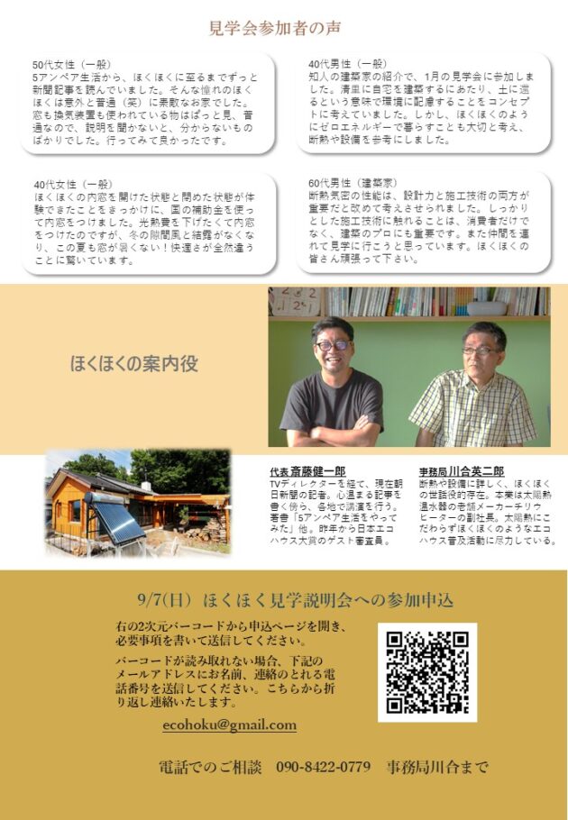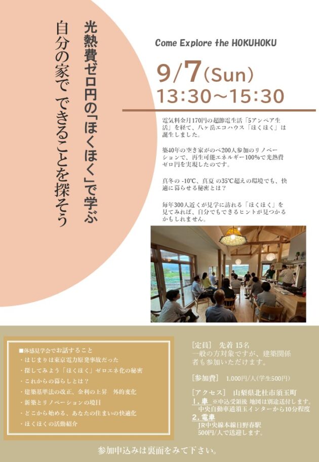 9/7(日)13:30~15:30 光熱費0円の「ほくほく」に学ぶ 自分の家でできることを探そう