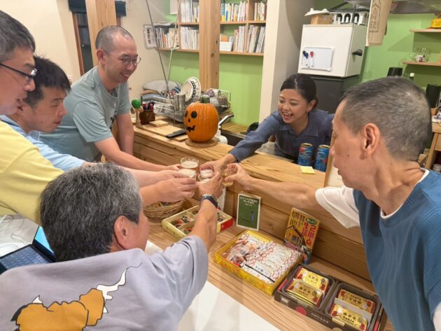 みんなで元気にほくほくで2次会。飲む人は飲み、しゃべる人はしゃべる。自由な空気感があふれていた翌日、近くを散歩したあと、朝食を食べて、今回のほくほくツアーの感想を共有しました。