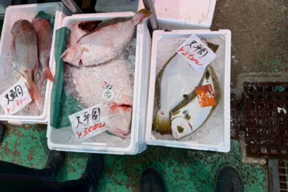 市場では、マグロのぶつ切りのほか、ヒラメを刺身用におろしてもらいました。