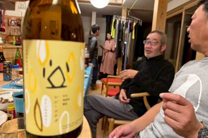 良く飲む二人。手前の瓶はプリンセスサリーというお米で作ったお酒。